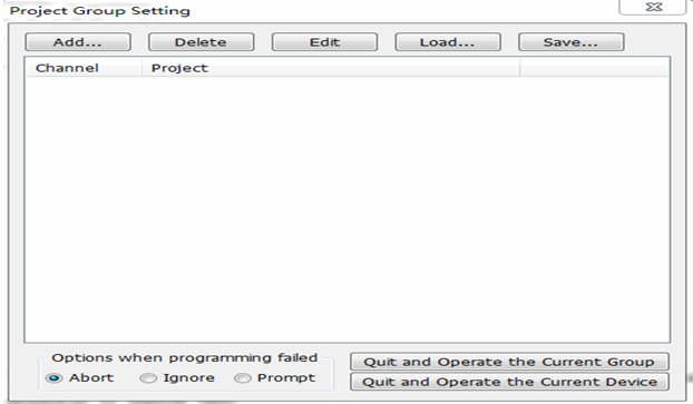 若想一键完成整个JTAG链上所有目标器件的烧写,可以借助于软件中的“工程组”功能。这是一个类似于批处理的功能,每个器件的映像文件创建一个工程文件,添加到工程组列表中。运行工程组时,列表中文件依次顺序执行。